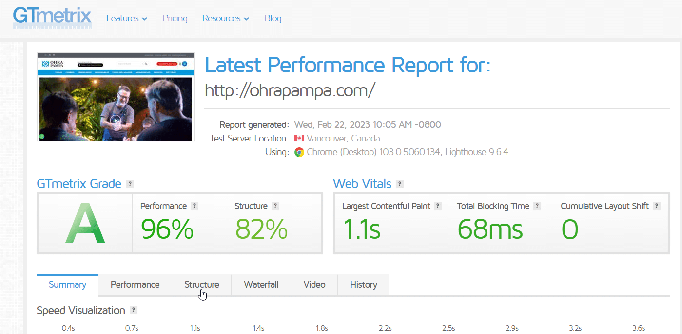 "Clase A" en GTmetrix.com
